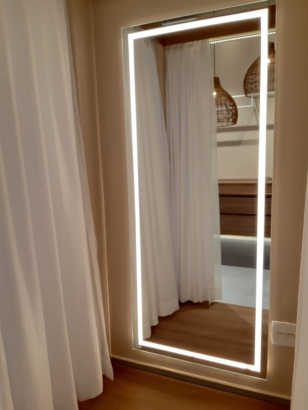 Espelho com Iluminação Led pode ser produzido sob medida, e com três fases de Iluminação em Led: branco frio, branco quante e os dois ligados aos mesmo tempo!